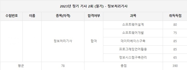 | [정보처리기사] 2023년 3회차 실기 시험 합격 후기 (0) | 2023.11.20 |